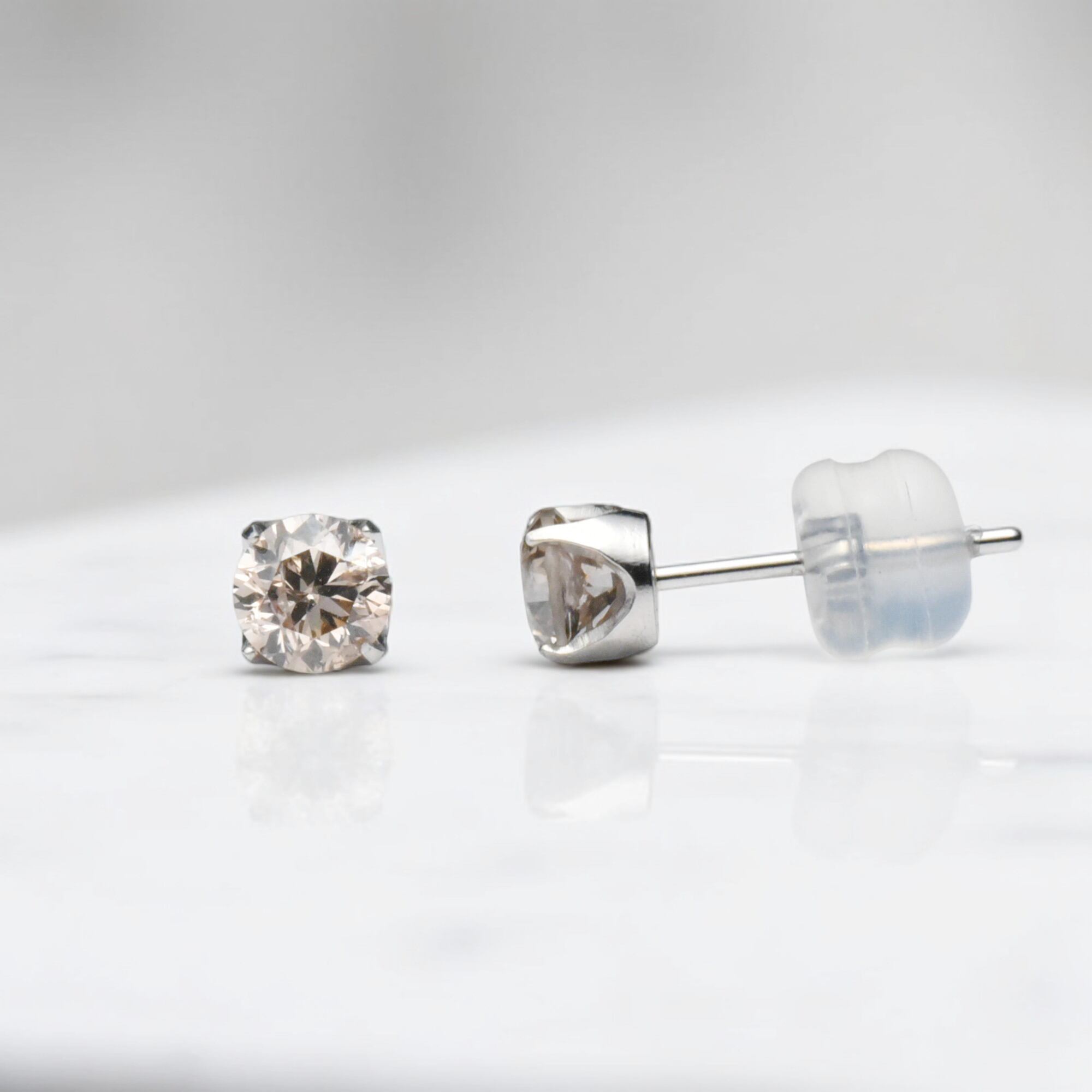 Pt900ブラウンダイヤモンド合計0.6ct ピアス 4本爪デザイン