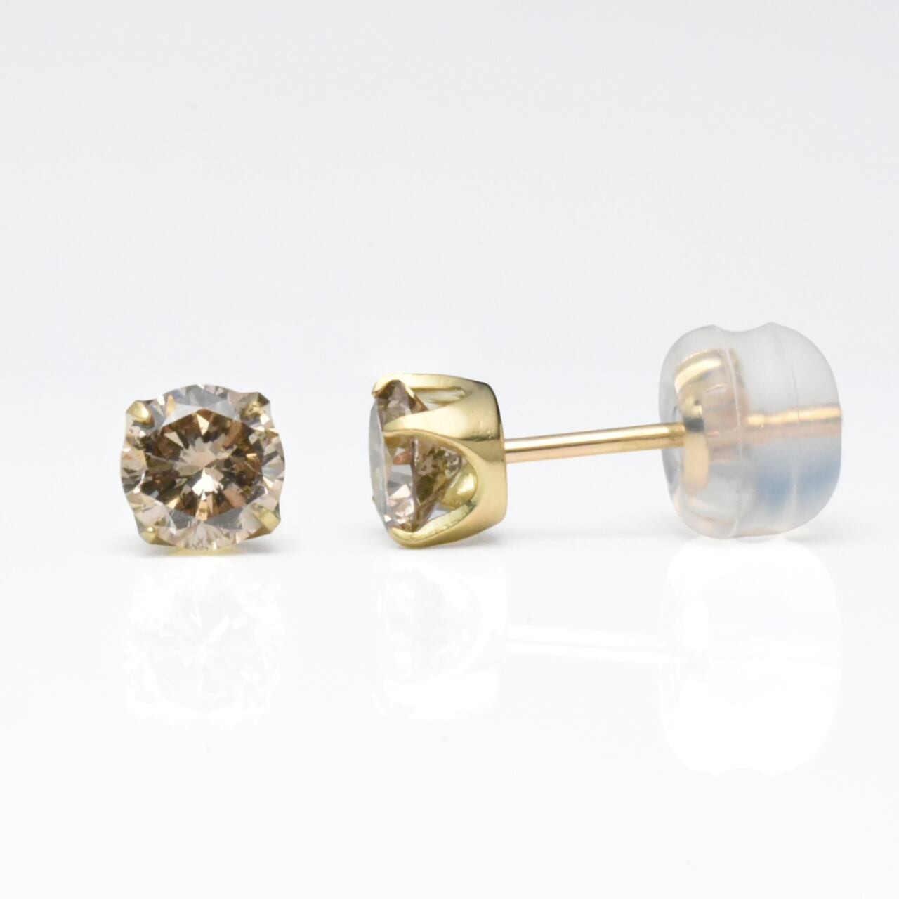 K18YGブラウンダイヤモンド合計0.6ct ピアス 4本爪デザイン