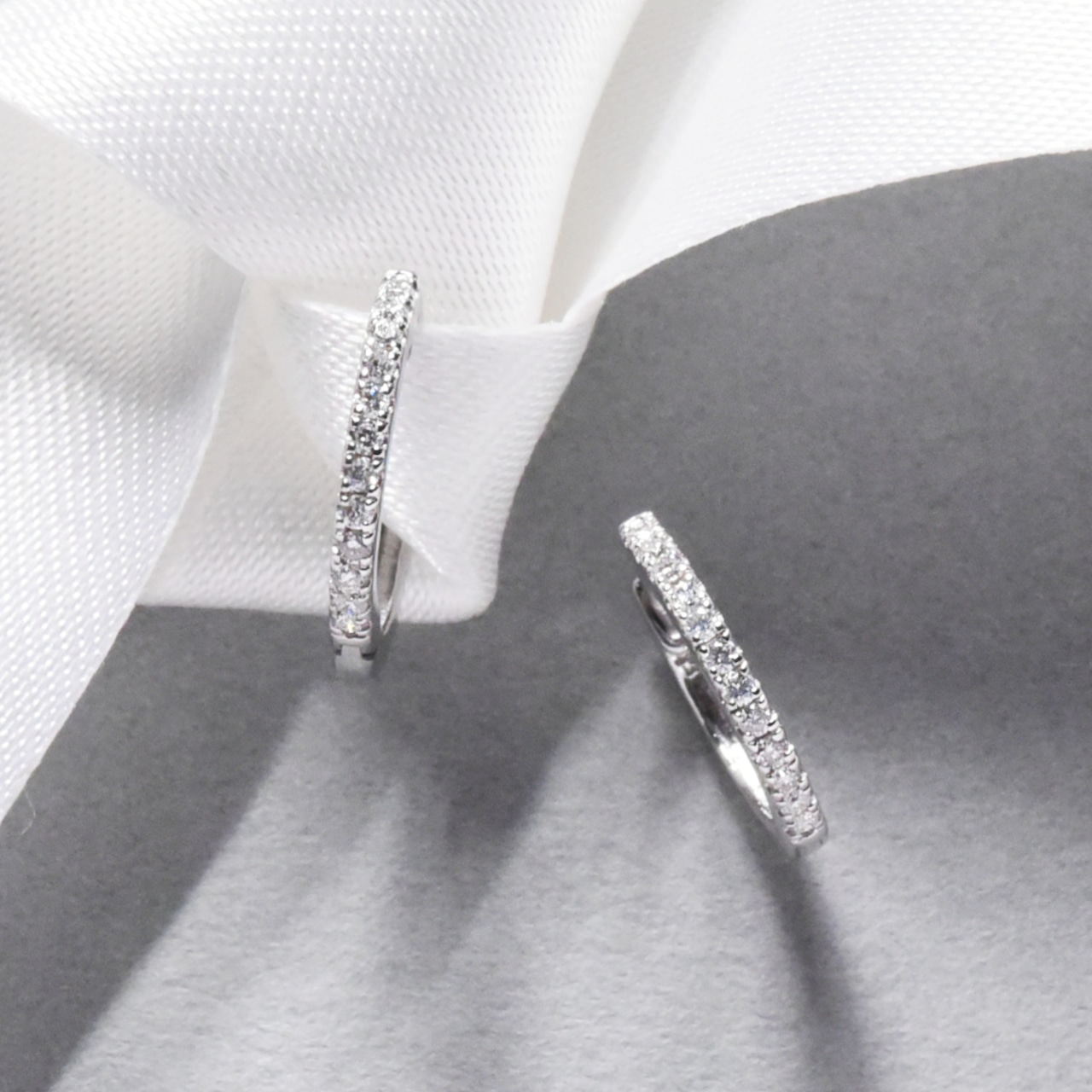 K18WGダイヤ合計0.09ctスリム ラウンドフープピアス