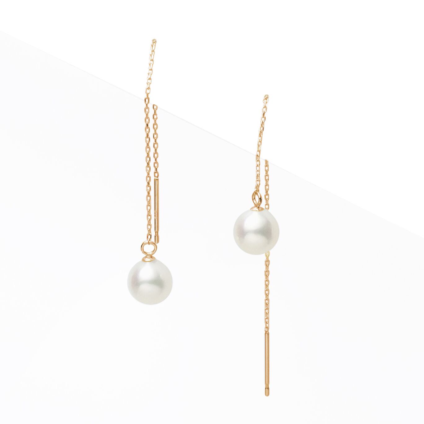 大きすぎず小さすぎない、程よいサイズ感で人気が高い約6mmのあこや本真珠のチェーンピアスです。