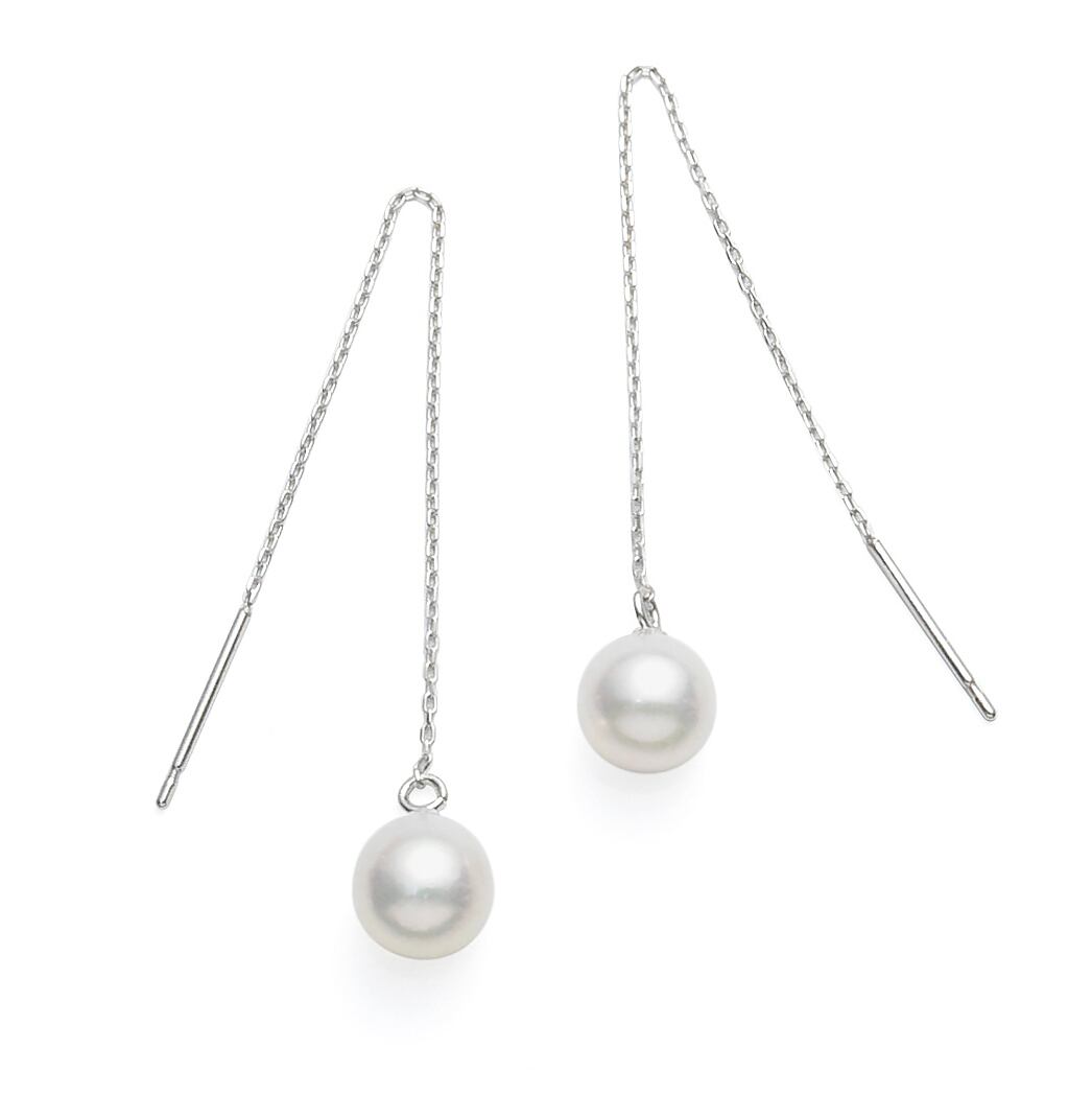 大きすぎず小さすぎない、程よいサイズ感で人気が高い約6mmのあこや本真珠のチェーンピアスです。