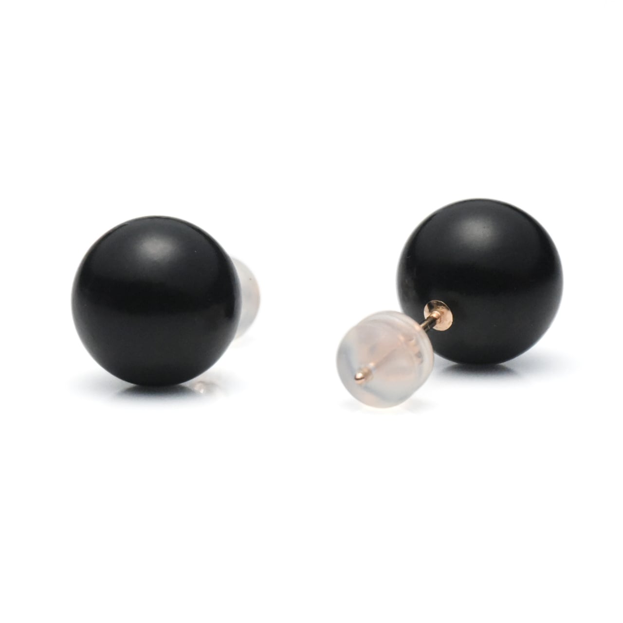 ピアス針はK18ピンクゴールドを合わせました。ジェットの上品な黒との組み合わせで風格を感じる組み合わせになっていると思います。