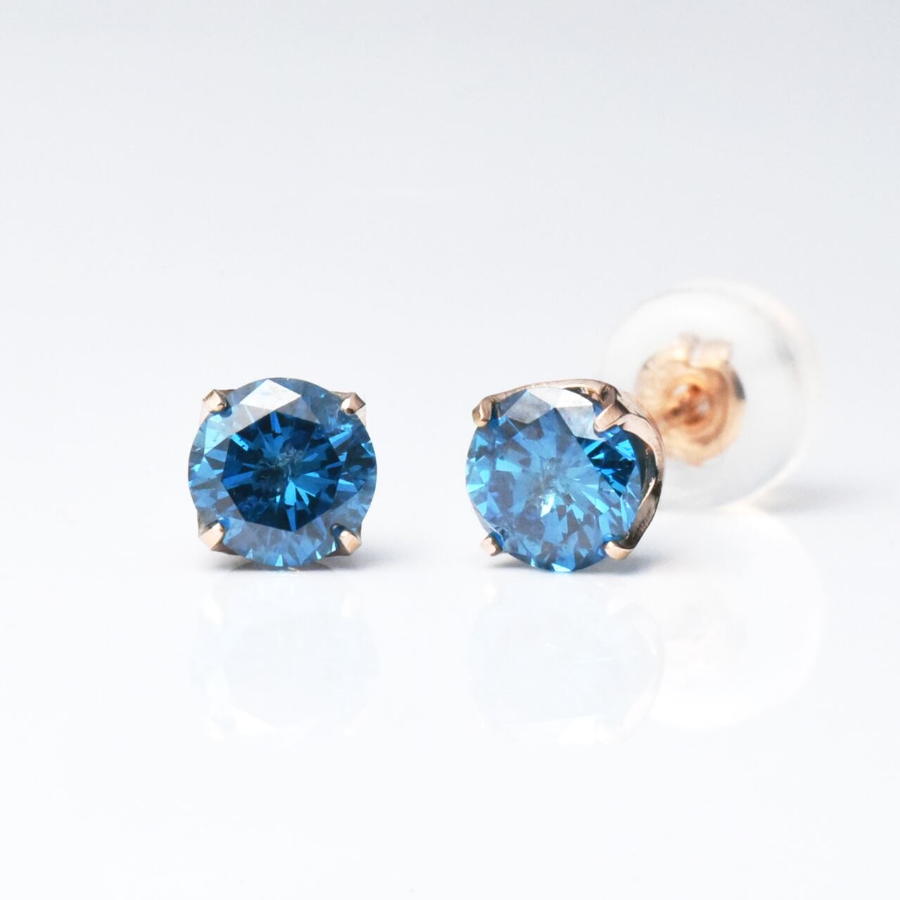 K18PGトリートディープブルーダイヤモンド合計0.5ctピアス 4本爪デザイン