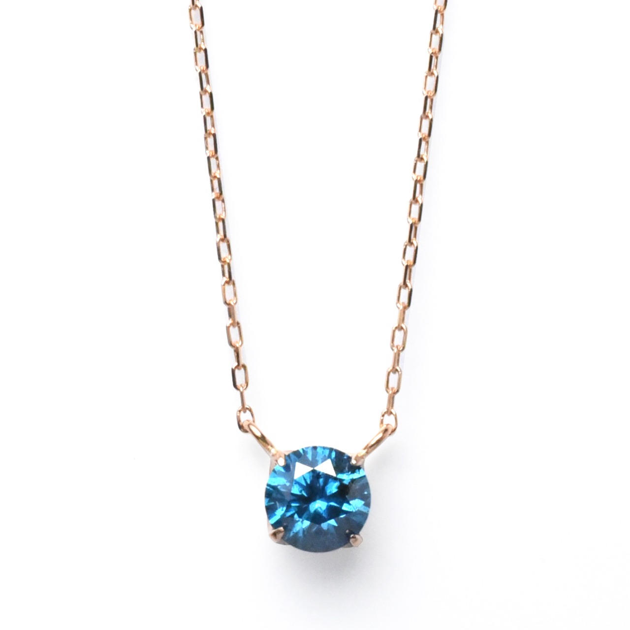 ■ インディゴ系のしっかりしたブルーのダイヤモンドが装いにひと味違う印象を与えてくれるペンダント。